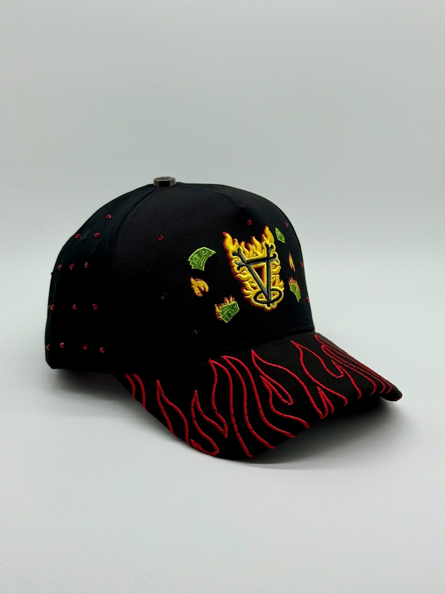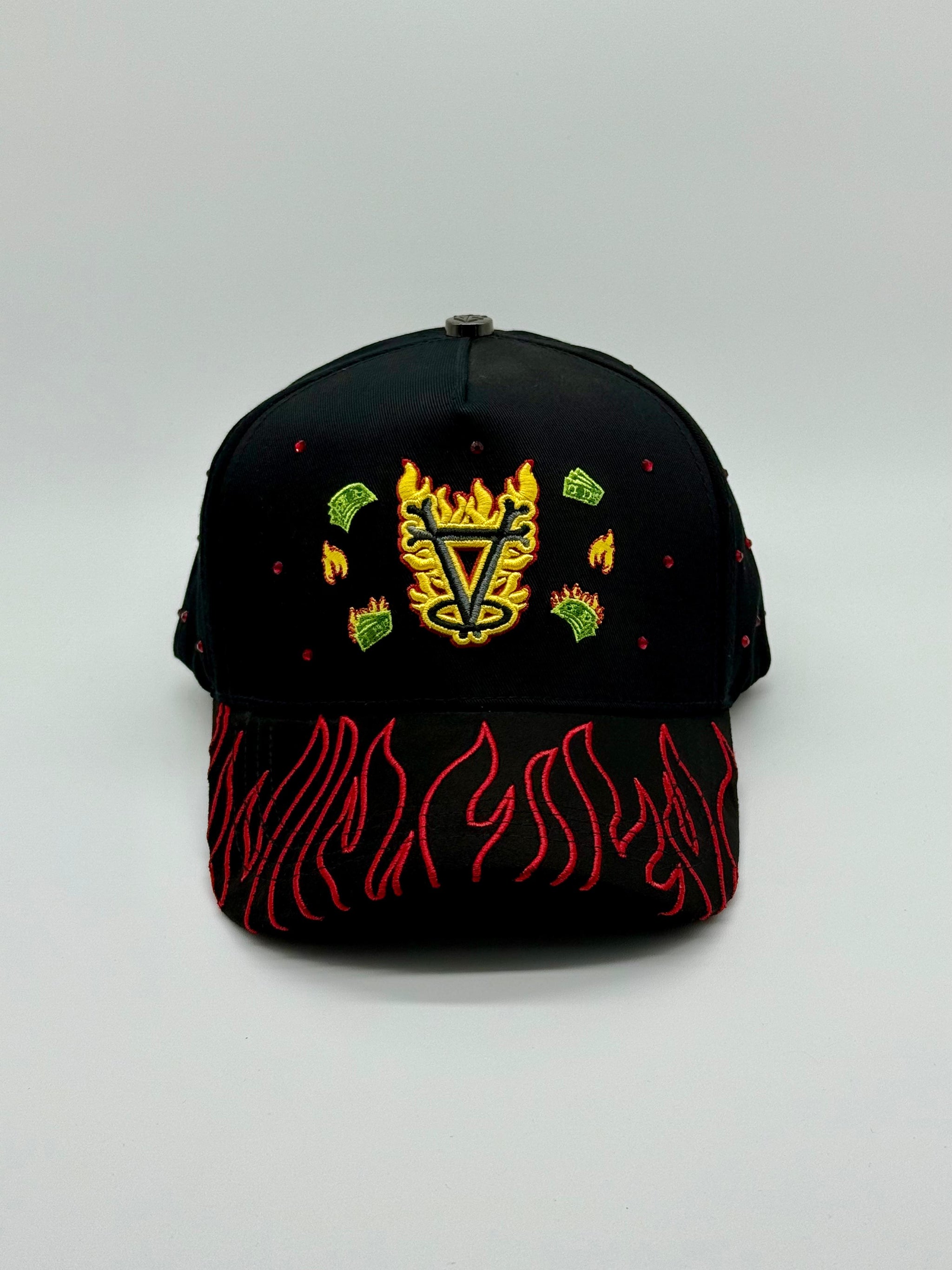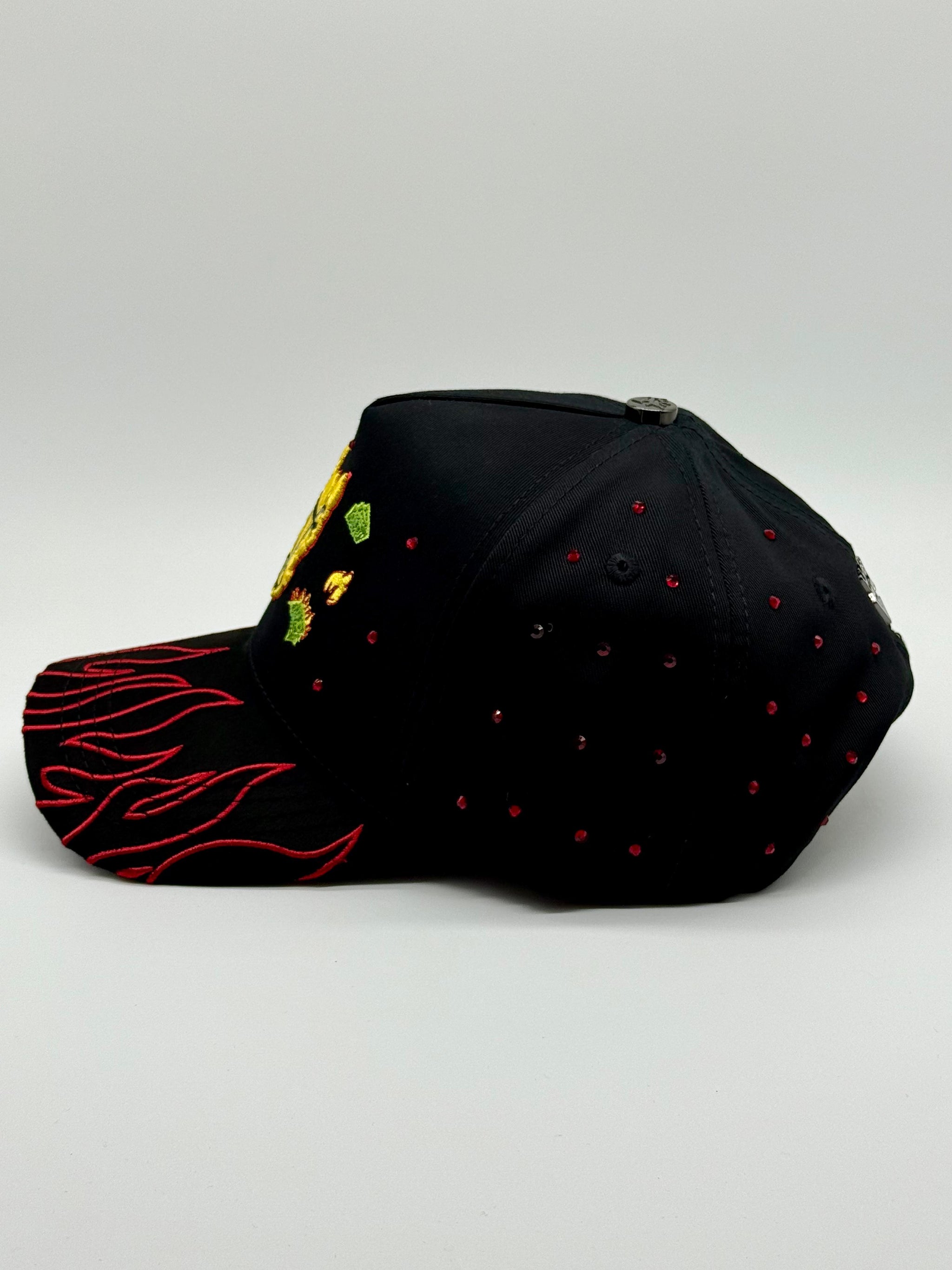 Descubre la gorra "Angels En Flamas", una pieza impactante que destaca por su diseño de llamas en tonos intensos, acentuadas con detalles en rojo que realzan su estilo único. Perfecta para quienes buscan un accesorio audaz y con personalidad, esta gorra combina originalidad y calidad, ideal para complementar cualquier look con un toque distintivo y enérgico.
