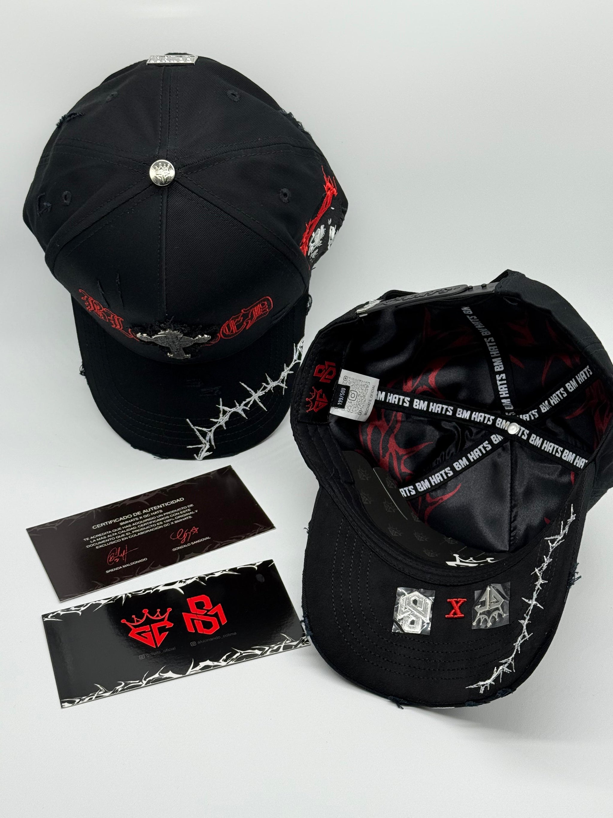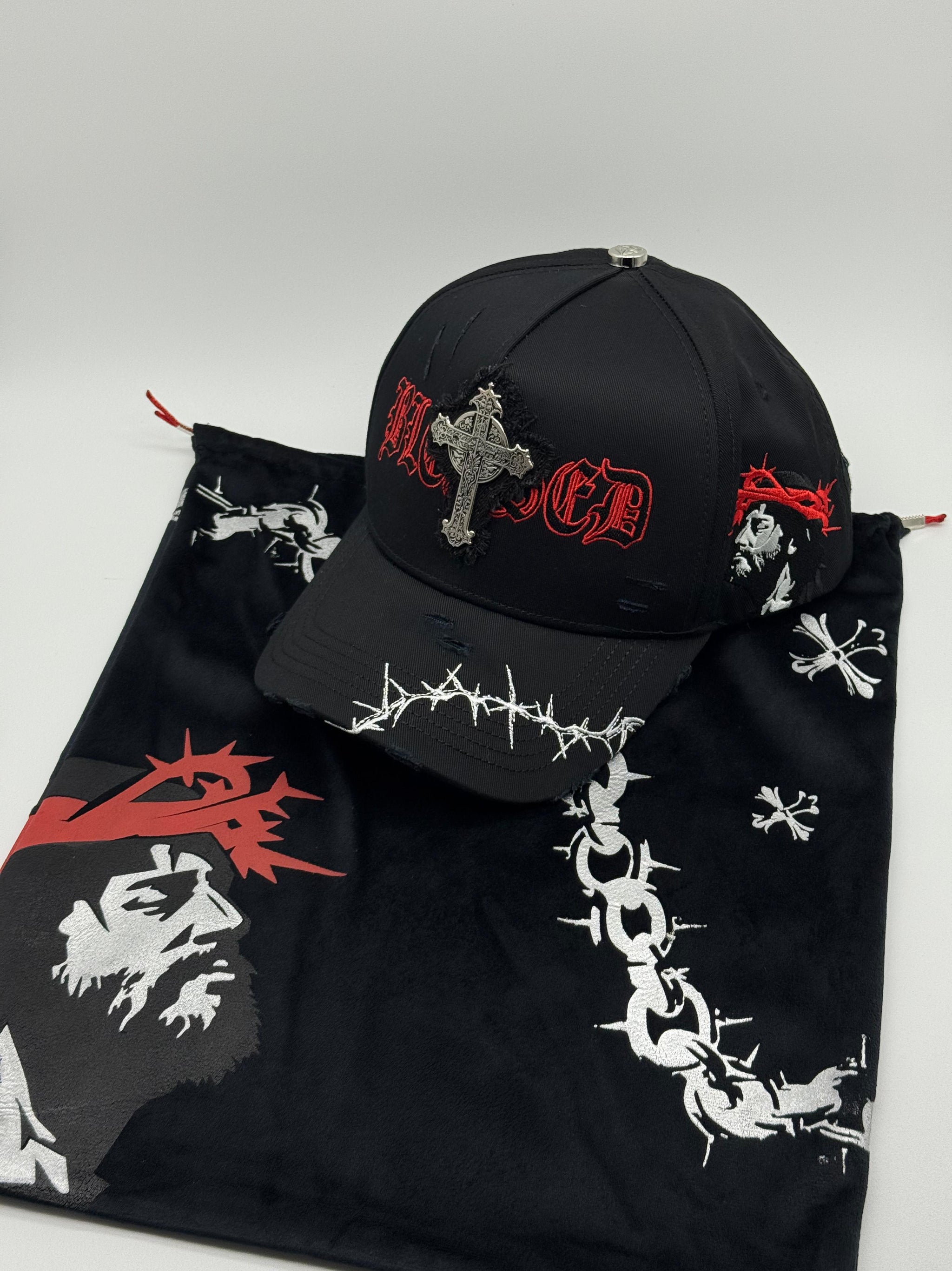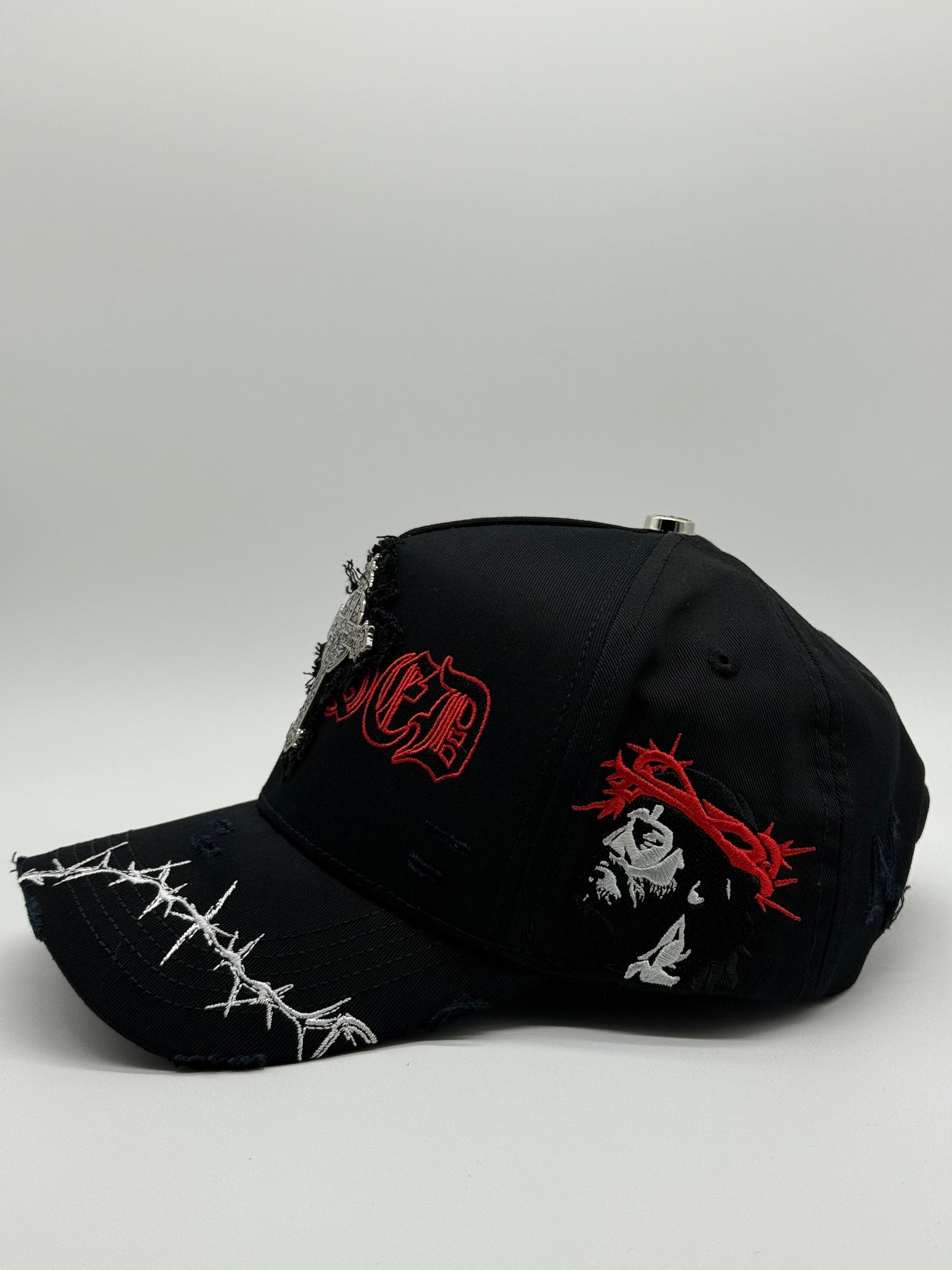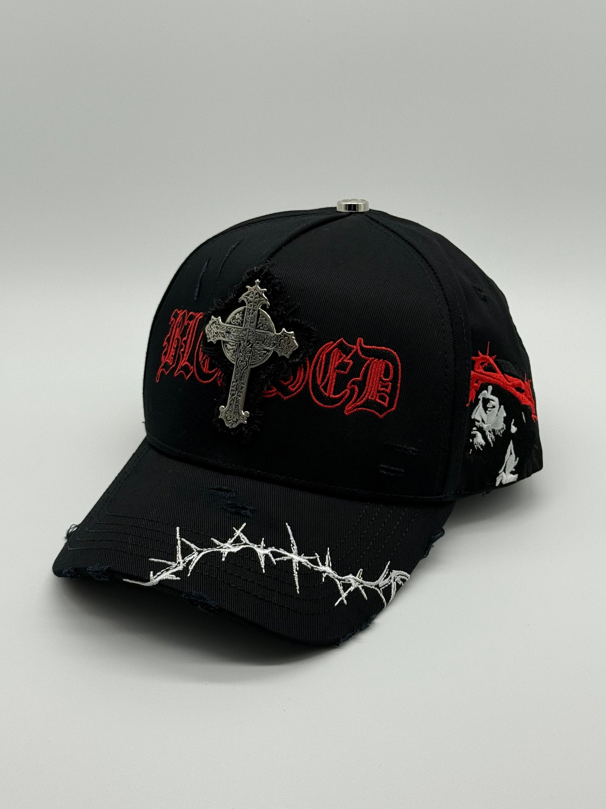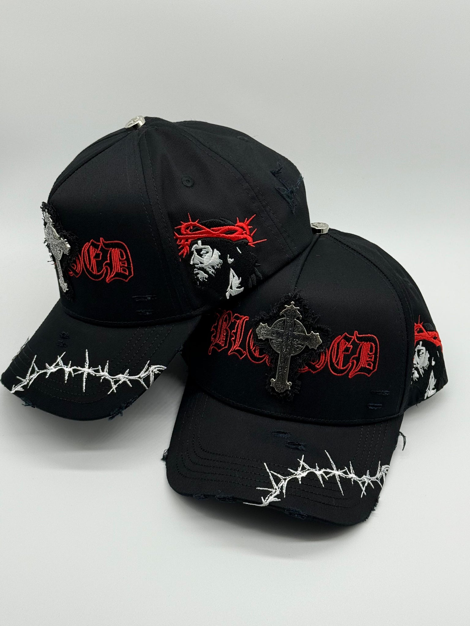 Esta gorra "El Bendecido" destaca por su diseño impactante, con letras prominentes al frente y una corona de espinas a los lados que le aporta un toque moderno y único. Ideal para quienes buscan un accesorio con carácter y estilo distintivo, combina originalidad y actualidad, perfecta para completar cualquier outfit con un aire fresco y cool.