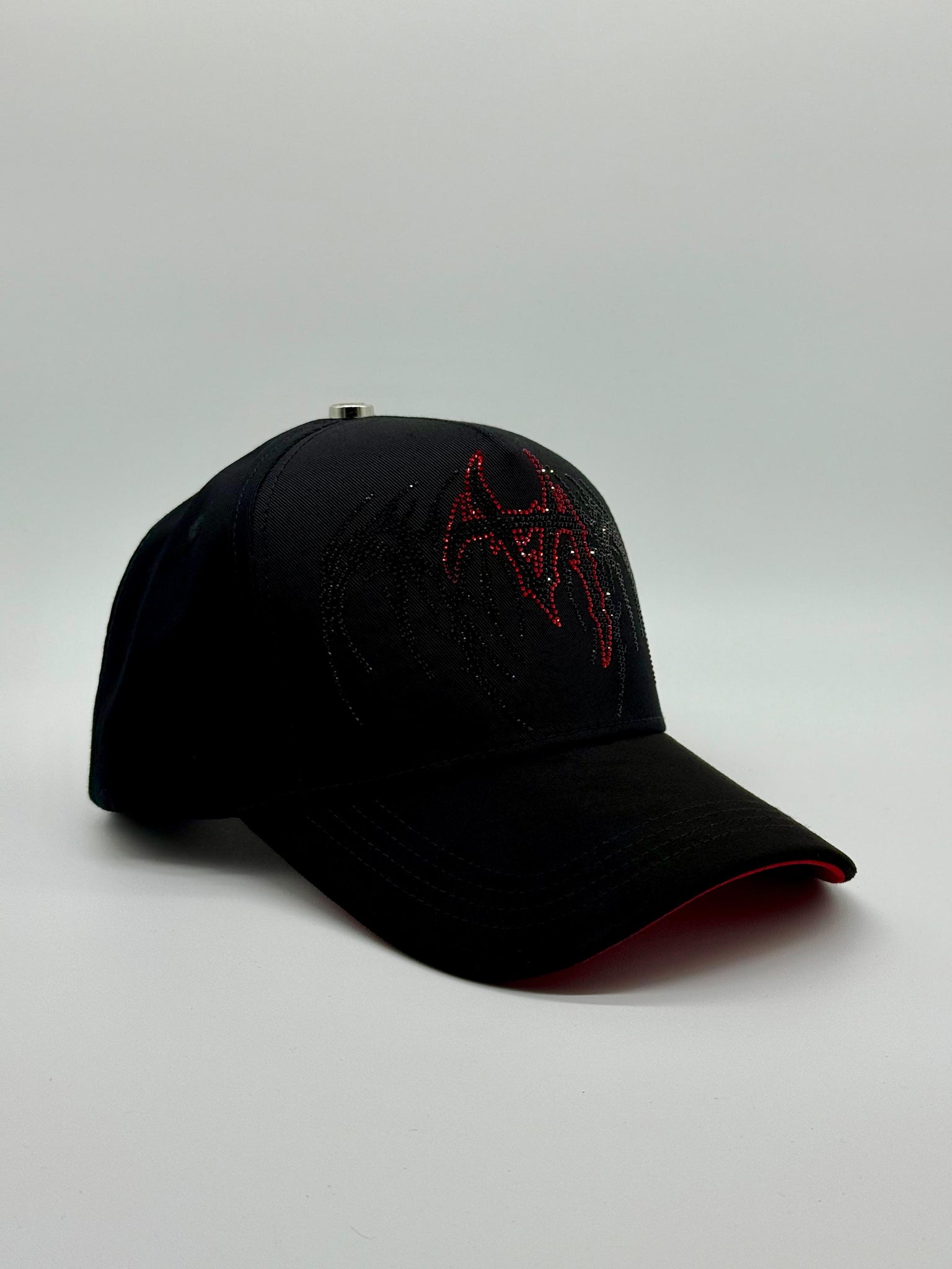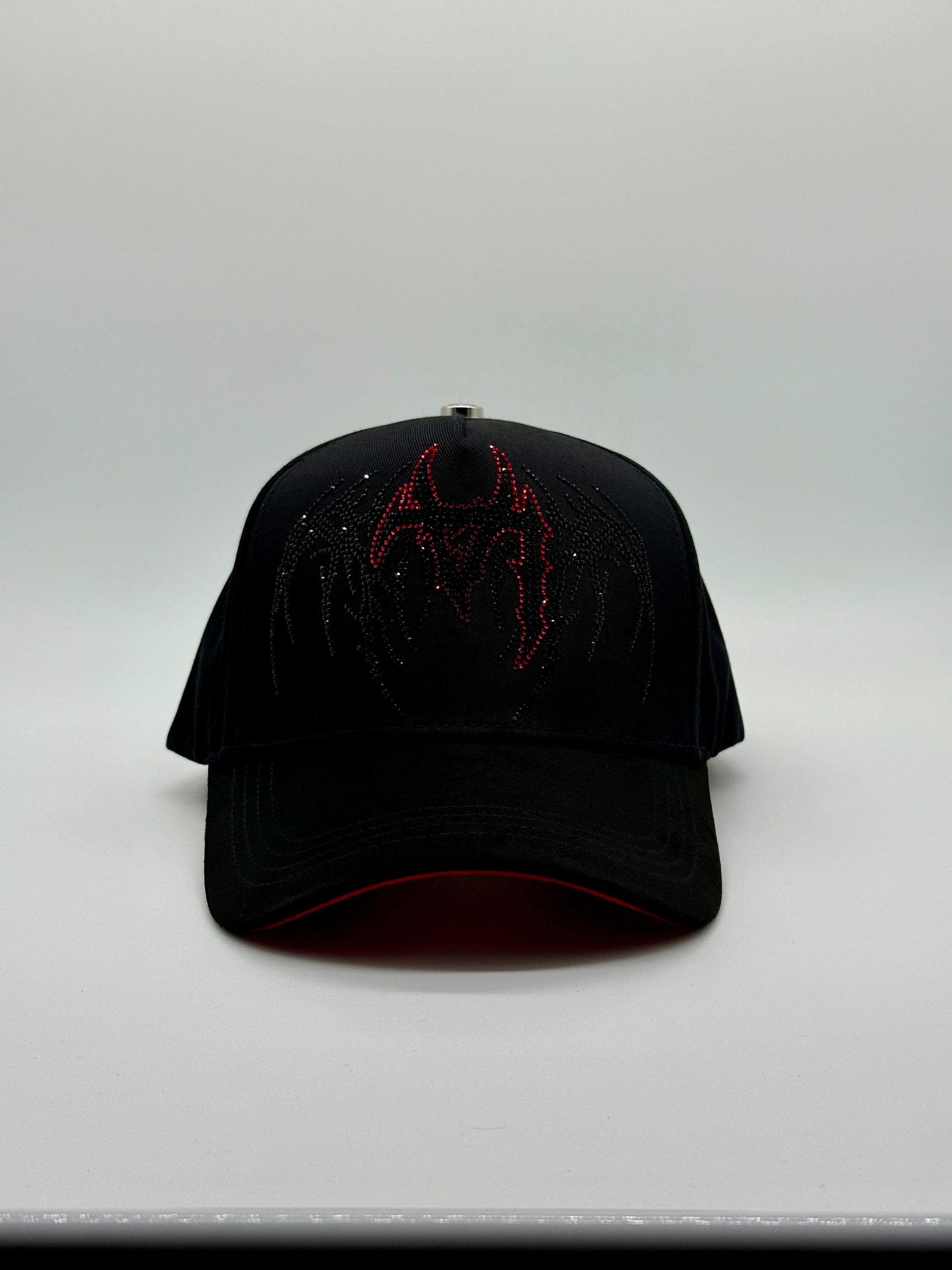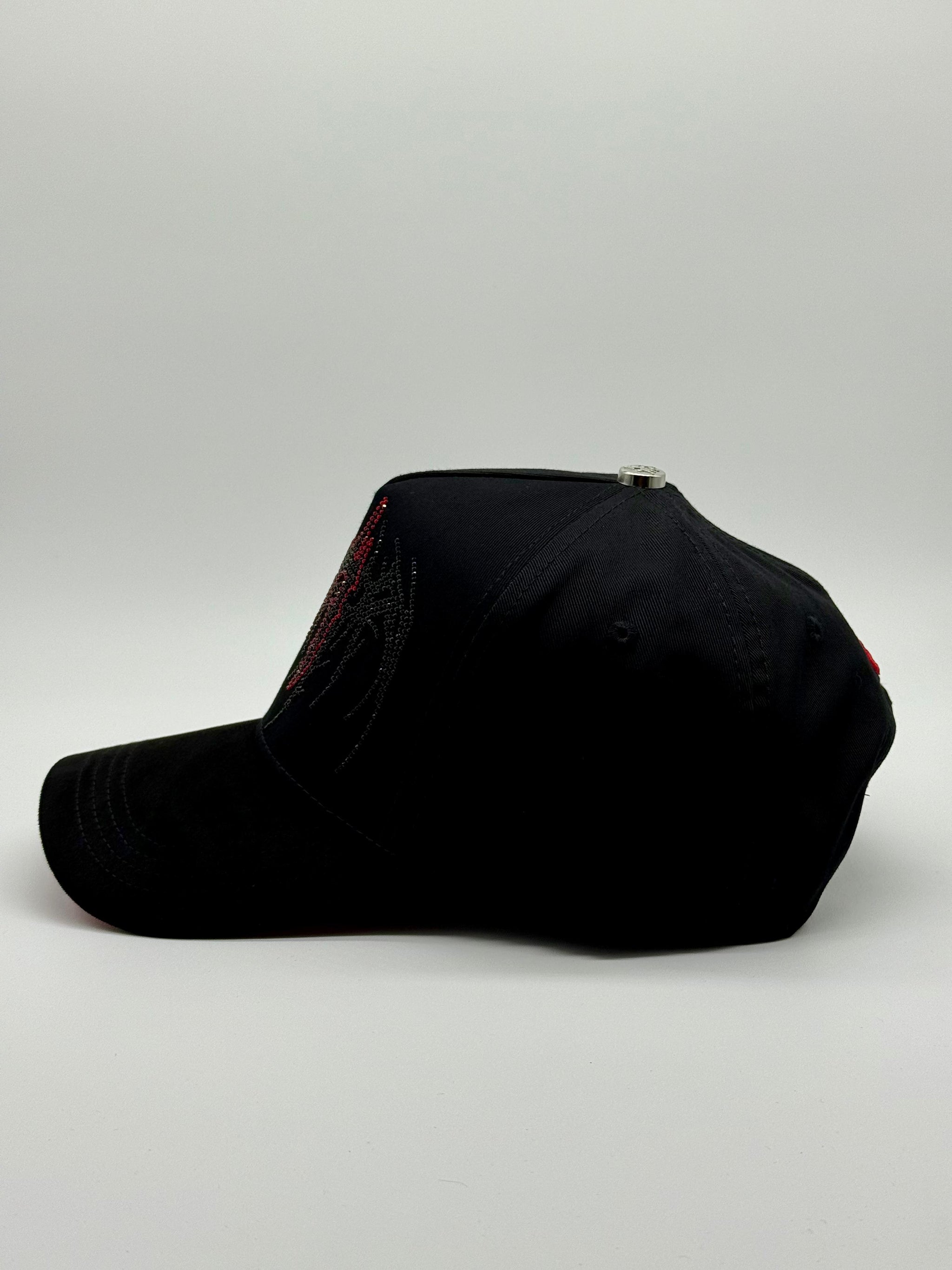 Esta elegante gorra negra presenta detalles en rojo que recorren todo el diseño, realzando su carácter único. Destaca por las letras "LA" invertidas bordadas con precisión, ofreciendo un toque original y llamativo. Perfecta para quienes buscan un estilo deslumbrante y exclusivo en cada accesorio.
