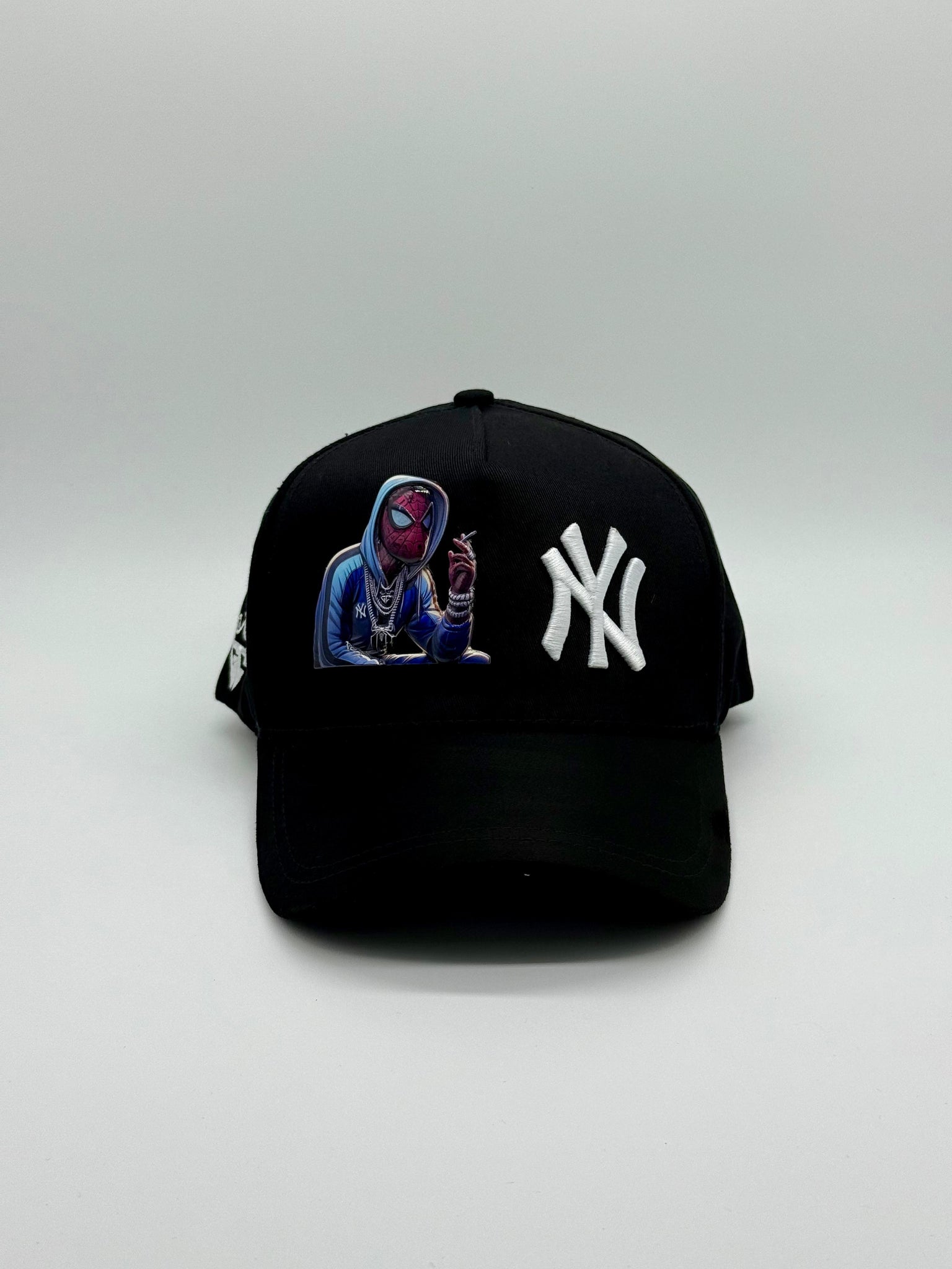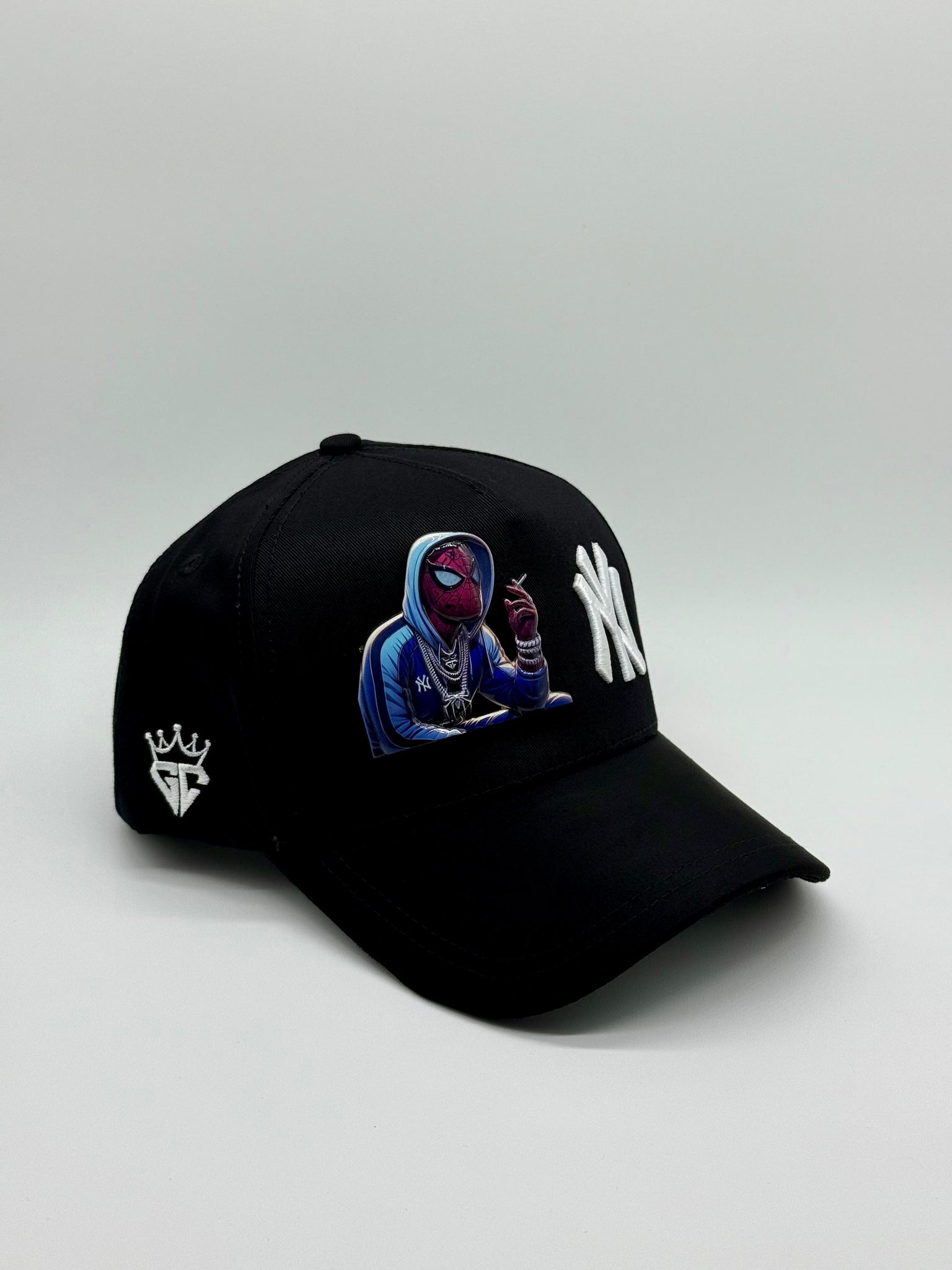 Esta gorra exclusiva combina un estilo único inspirado en Spider-Man con un diseño icónico de telarañas y el emblemático logo de NY. Su base negra resalta los vibrantes colores azul y rojo, ofreciendo un look moderno y llamativo. Perfecta para quienes buscan un accesorio distintivo que fusiona cultura urbana y personalidad.
